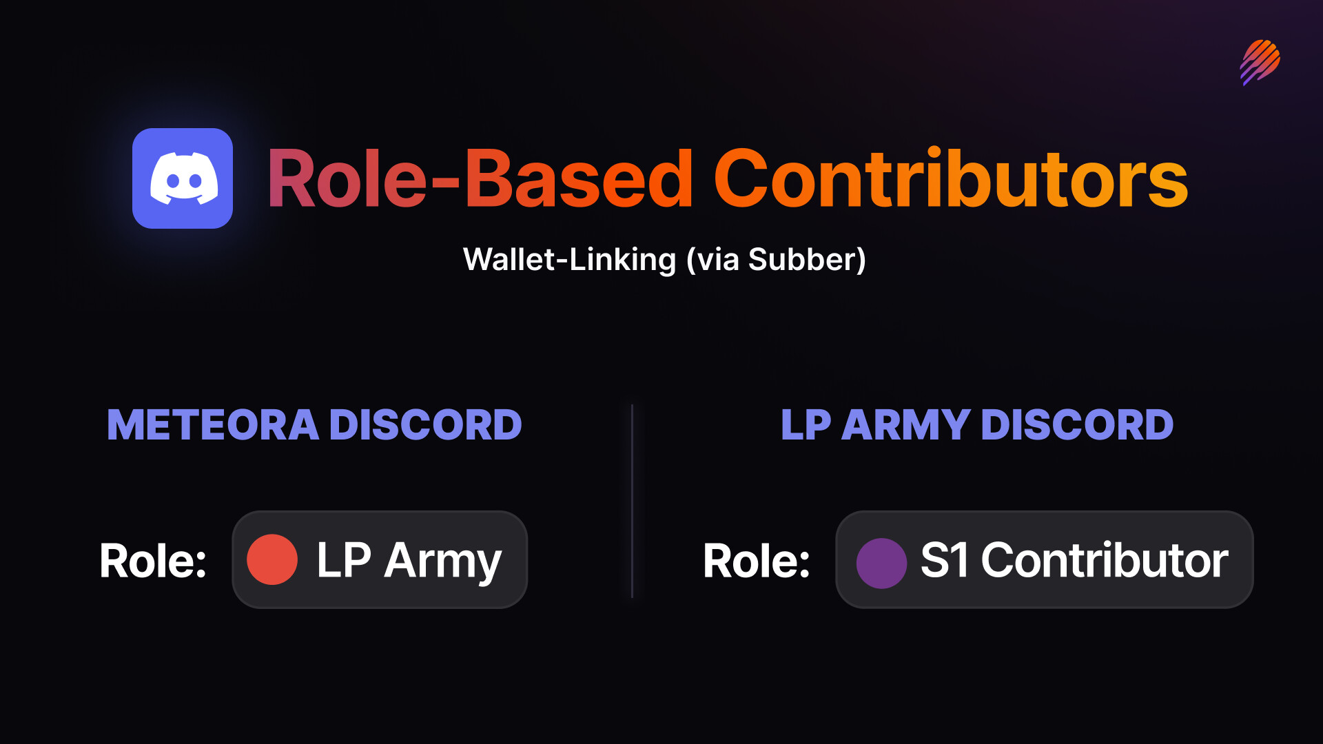 Today, we’re announcing a wallet-linking process for our role-based contributors on Discord. This consists of the “LP Army” role on the Meteora server and the “S1 Contributor” role on the LP Army server.